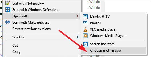Чтобы сделать VLC проигрывателем по умолчанию для файлов MKV, чтобы вы могли просто дважды щелкнуть файл, когда хотите посмотреть видео, щелкните правой кнопкой мыши любой файл MKV, выберите «Открыть с» и нажмите «Выбрать другое приложение».